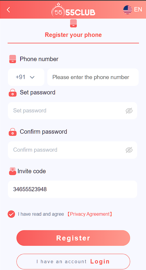 The 55Club register process is straightforward and does not require complex steps. New users can complete registration within minutes.
